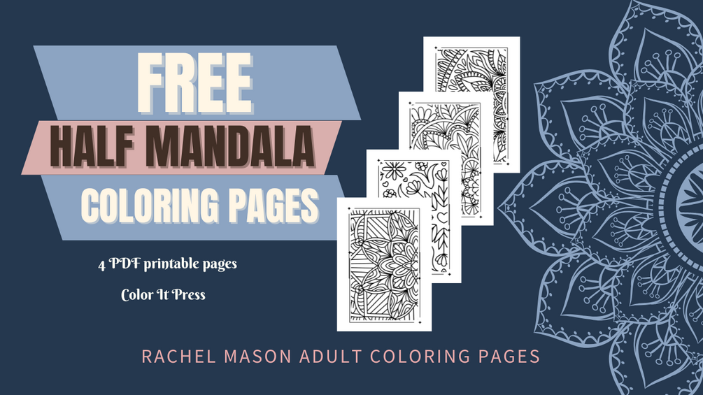 free coloring pages, adult coloring, mandala coloring, half mandala, printable coloring sheets, stress relief coloring, mindfulness coloring, relaxation art, floral mandala, zen coloring, coloring for adults, free pdf coloring, Rachel Mason coloring, calming art, therapeutic coloring